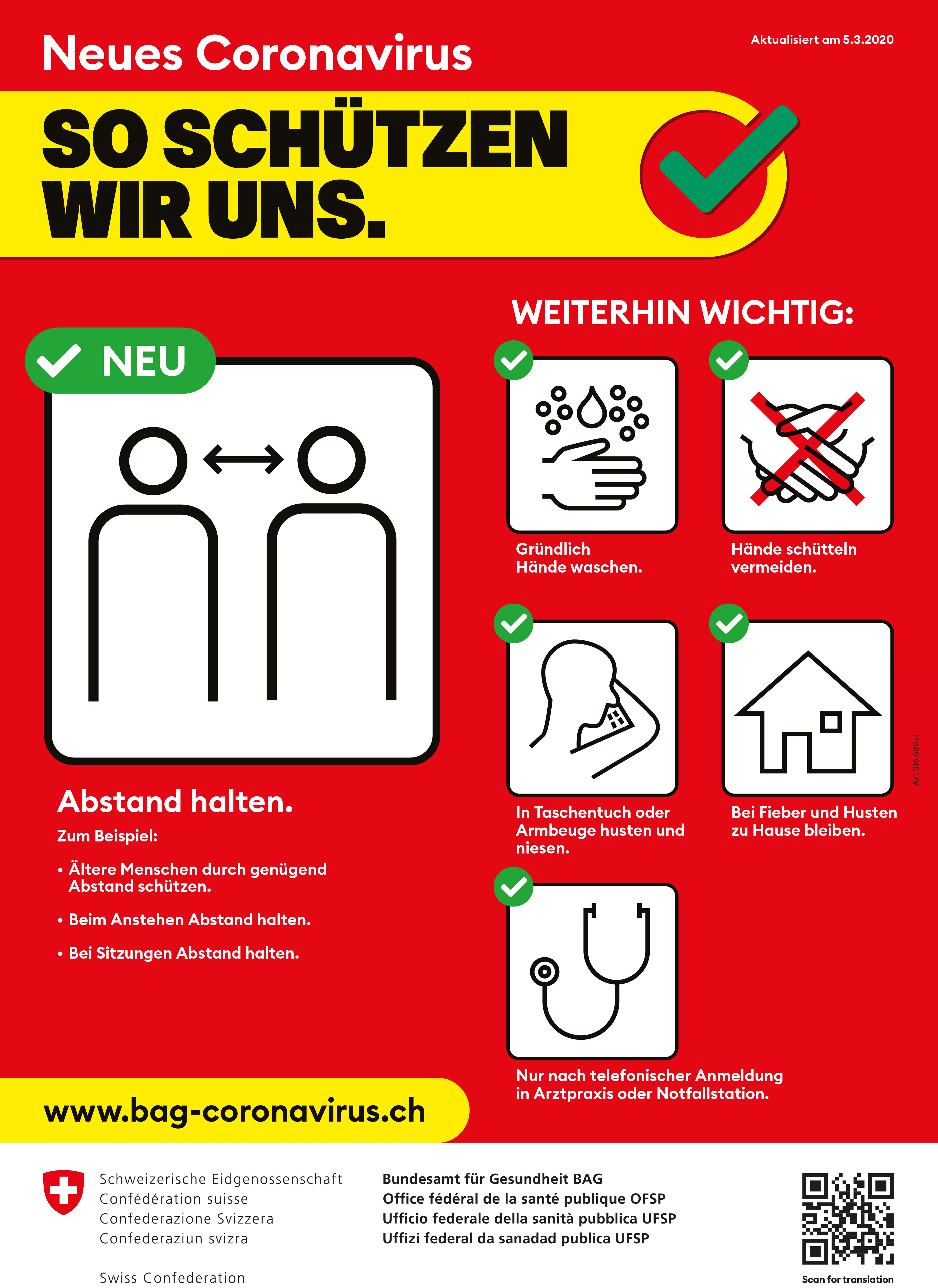 Am Montag 16.März hat der Bundesrat die «Verordnung 2 über Massnahmen zur Bekämpfung des Coronavirus» in Kraft gesetzt und damit die bisherigen Massnahmen zum Schutz vor dem Coronavirus erneut verschärft. Gleichzeitig hat der Bundesrat unterstützende Massnahmen für die Wirtschaft angekündigt, um die Einnahmeausfälle und Schäden aus den Betriebseinschränkungen zu mindern.